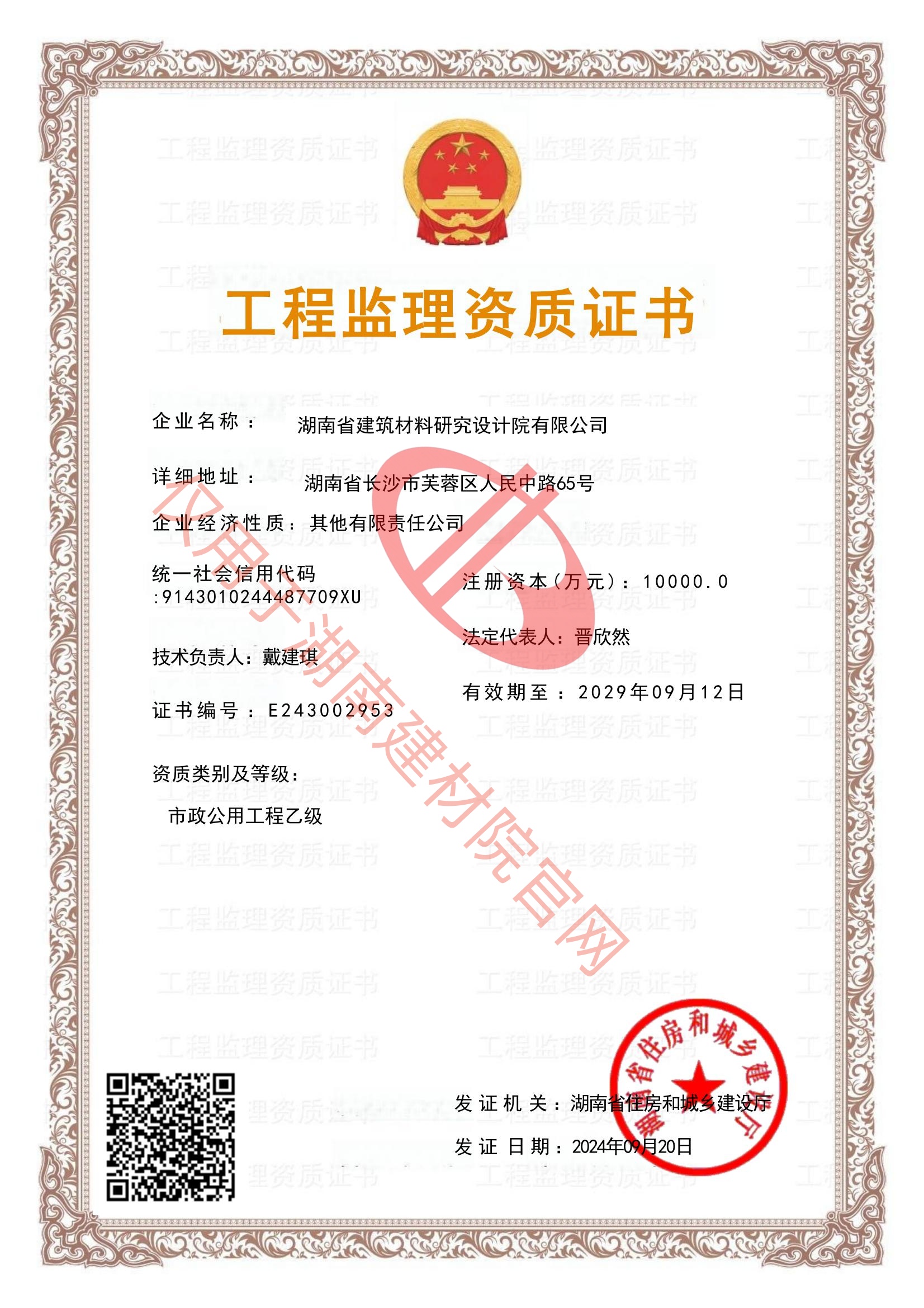 湖南省建筑材料研究設計院有限公司的前身為湖南省建筑材料研究設計院,成立于1958年,是1993年全國首批榮獲國家建材行業(yè)設計、工程總承包甲級資質的四個科研設計單位之一。